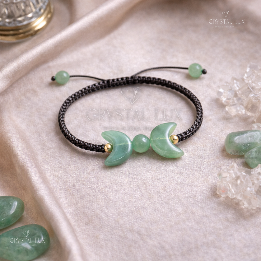 Green Aventurine Crescent Bracelet for Luck, Prosperity & Emotional Healing | Adjustable Natural Crystal Bracelet