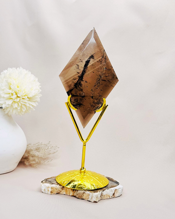 Luxury Smokey Quartz Diamond Crystal | Grounding Stone for Meditation & Home Display