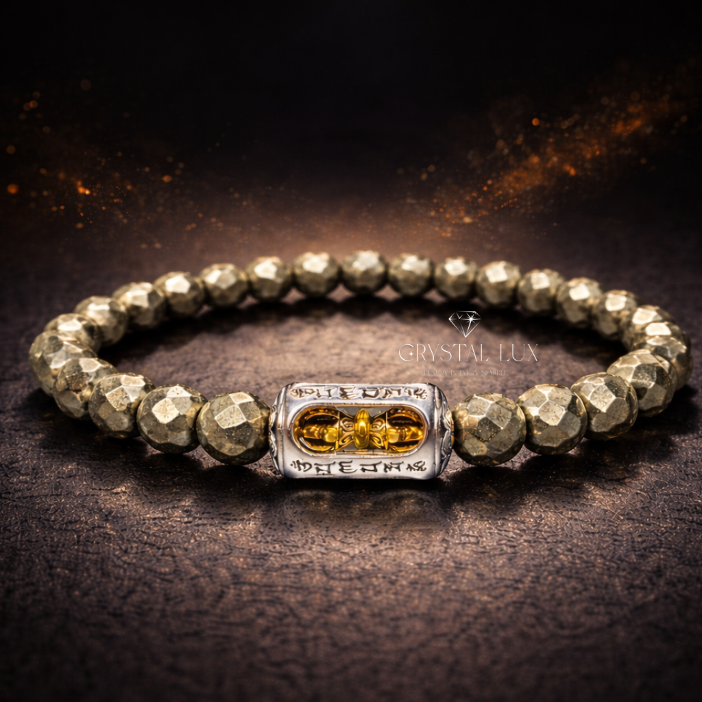 Pyrite Vajra Charm Bracelet | Sacred Symbol of Wealth & Strength