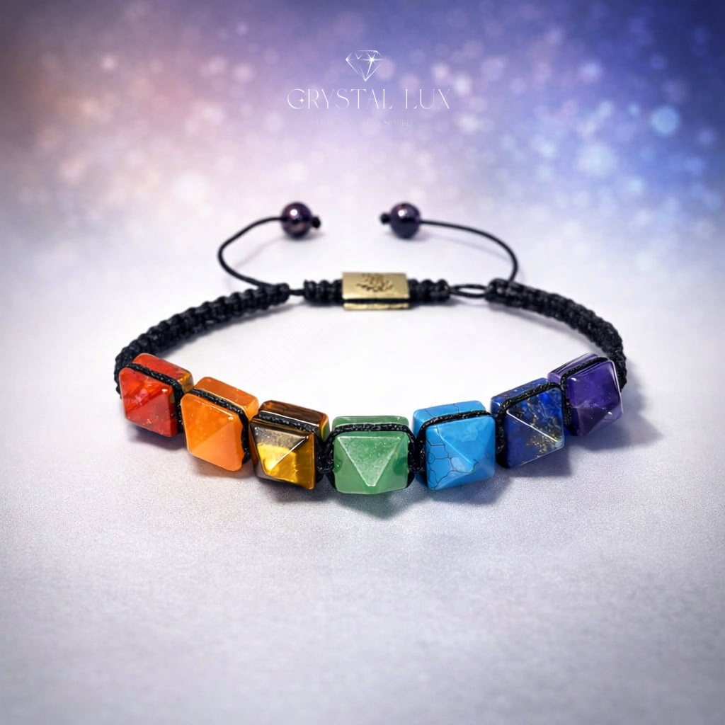 Natural Seven Chakra Pyramid Stone Bracelet for Energy Alignment & Harmony