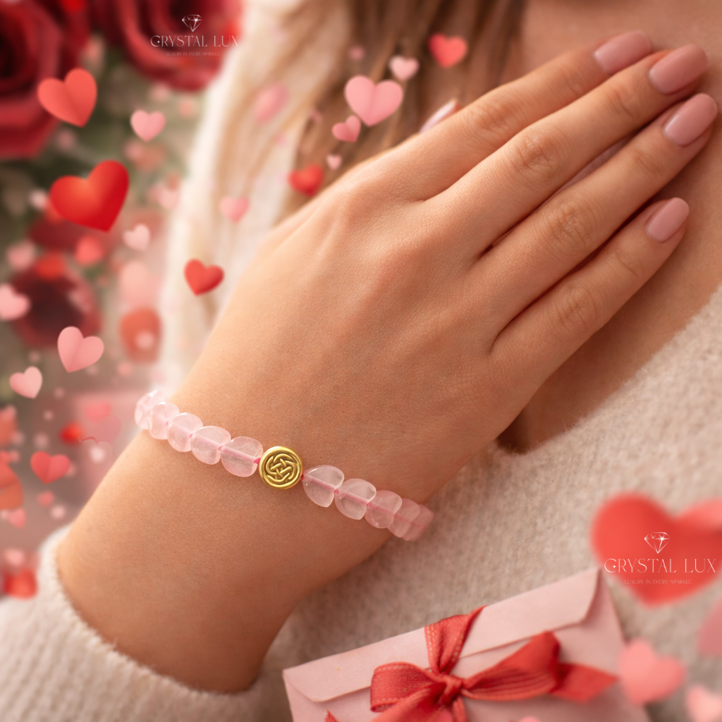 Rose Quartz Crescent Bracelet for Love & Emotional Healing | Adjustable Crystal Bracelet