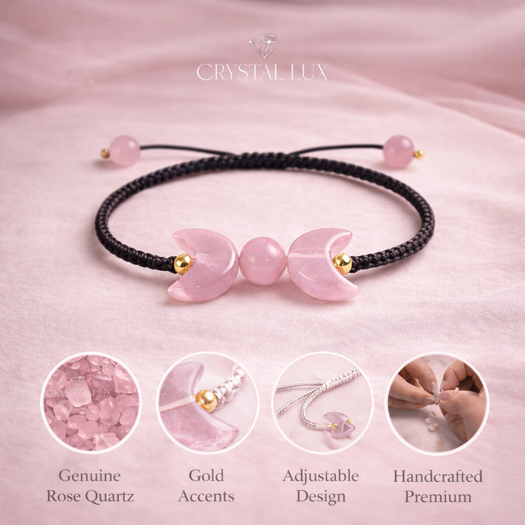 Rose Quartz Crescent Bracelet for Love & Emotional Healing | Adjustable Crystal Bracelet
